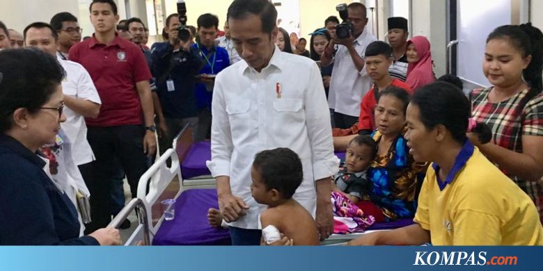 JAKARTA, KOMPAS.com - Presiden Joko Widodo menjenguk korban tsunami Selat Sunda yang dirawat di RSUD dr. H. Bob Bazar di Kecamatan Kalianda, Lampung Selatan, Rabu (2/1/2019).